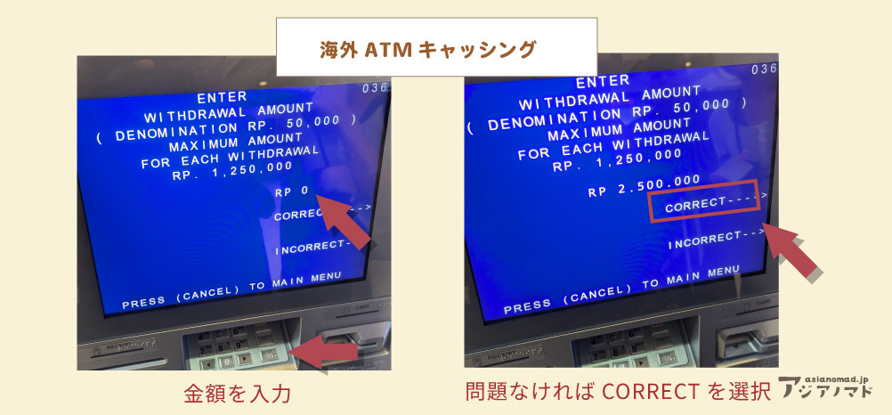 海外のATMは金額入力が不慣れなためわかりにくい、「…この少数点は何?」「いくら分入力するんだっけ?」など頭がパニックになります。後ろに並んでいる人がいるとなおさらあせります。