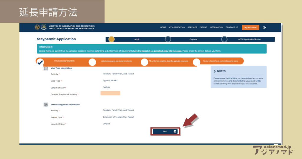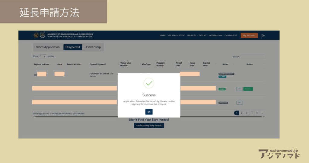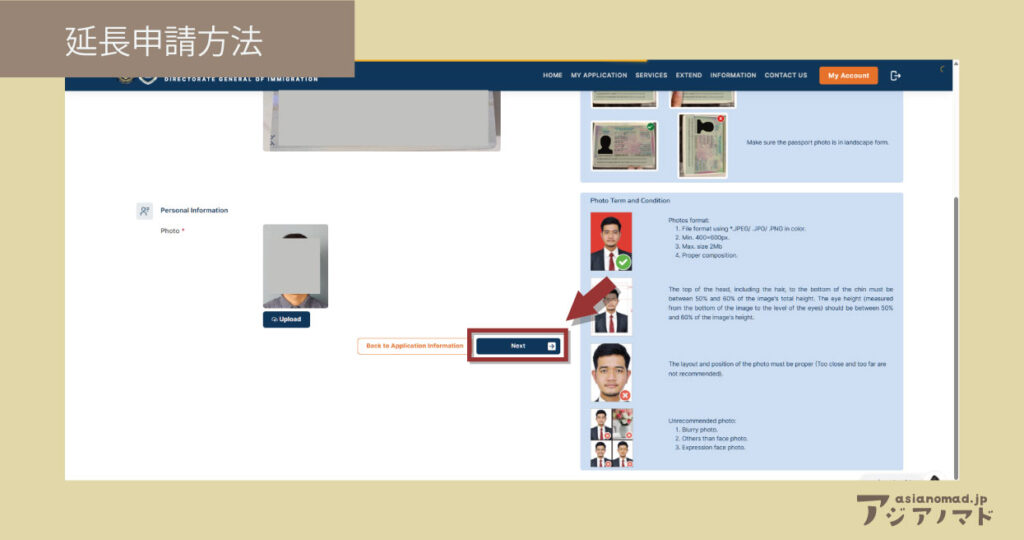 ただ、最近ルールが変わり、延長を完了させるためにイミグレーションオフィスへ足を運び、現地で写真撮影を行うことが必須となっています。延長申請が完了した後、3日以内にイミグレーションオフィスで撮影してくださいと情報が出るので、申請のタイミングにも注意が必要です。