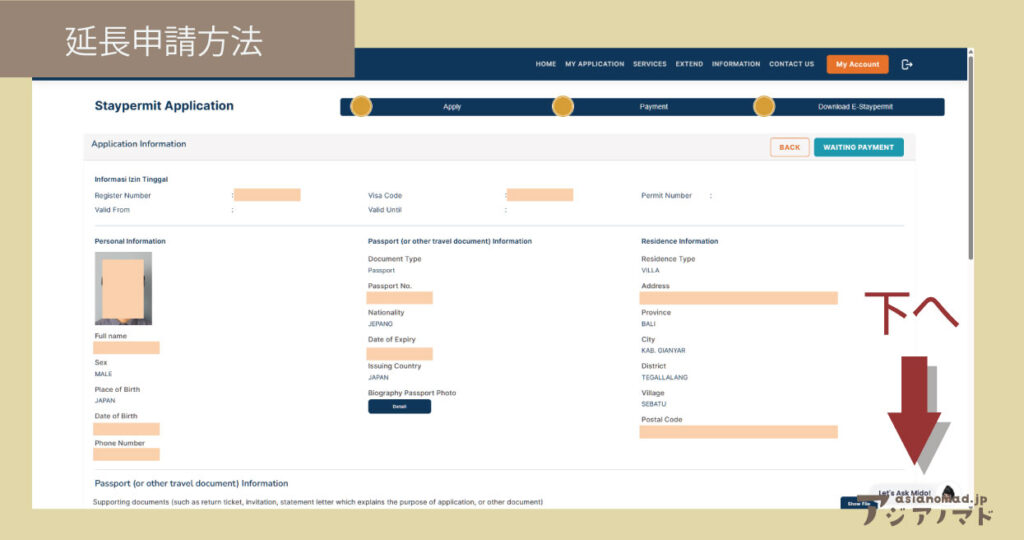 申請後は3営業日以内に移民局で写真撮影と面接を受け、すべて完了して初めて正式な延長となります。