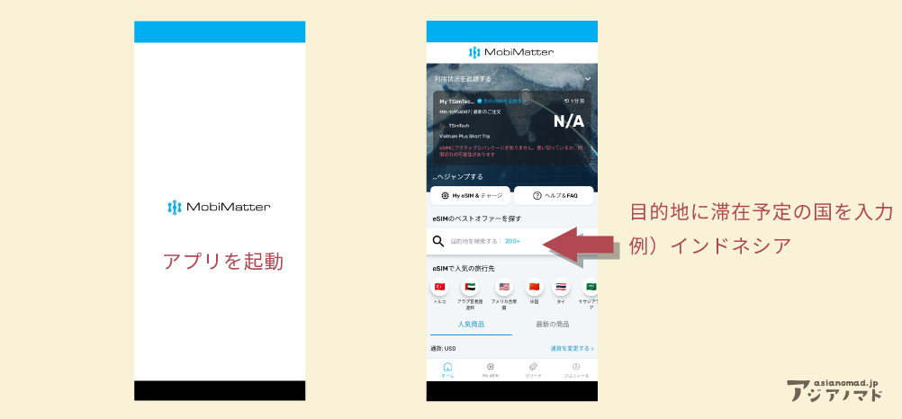 MobiMatter(モビマター)は、世界200以上の国と地域で使えるプリペイド式の旅行用eSIMを比較・購入できる、オンラインの「eSIMマーケットプレイス」。様々な会社のsimのプランから選択できます。