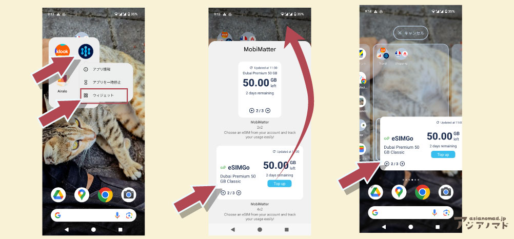 再度長押しすると消去メニューが出るのでいつでも消す事も出来ます。