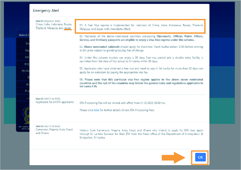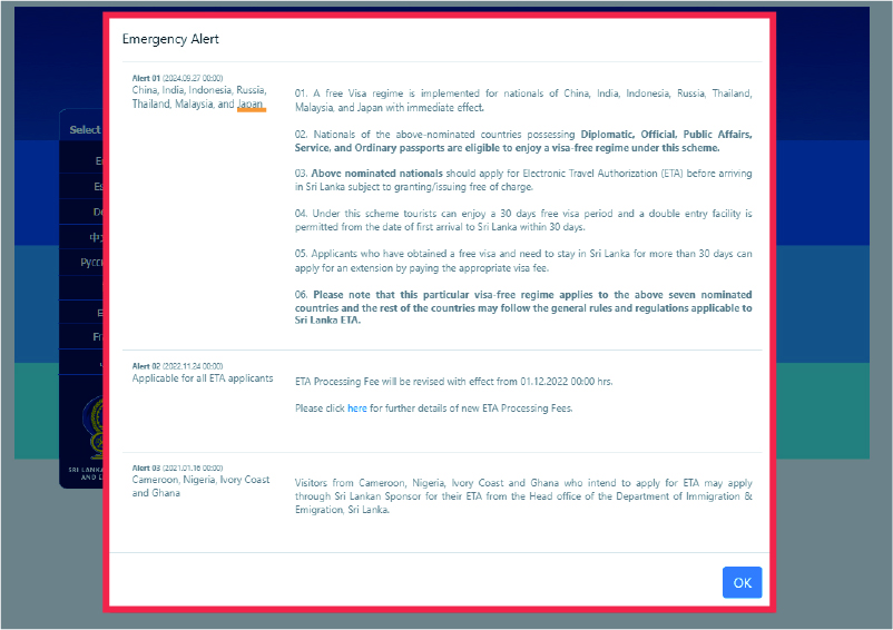 それ以外の国籍の方は、通常のスリランカETAの規則に従う必要があります。