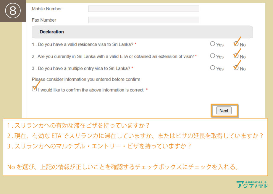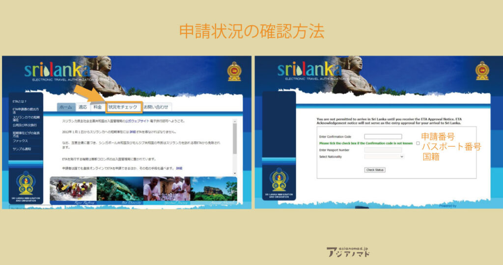 上記対象国の国民は、スリランカ到着前に必ずETA(電子渡航認証)を申請する必要があります。このETAは無料で発給されます。
