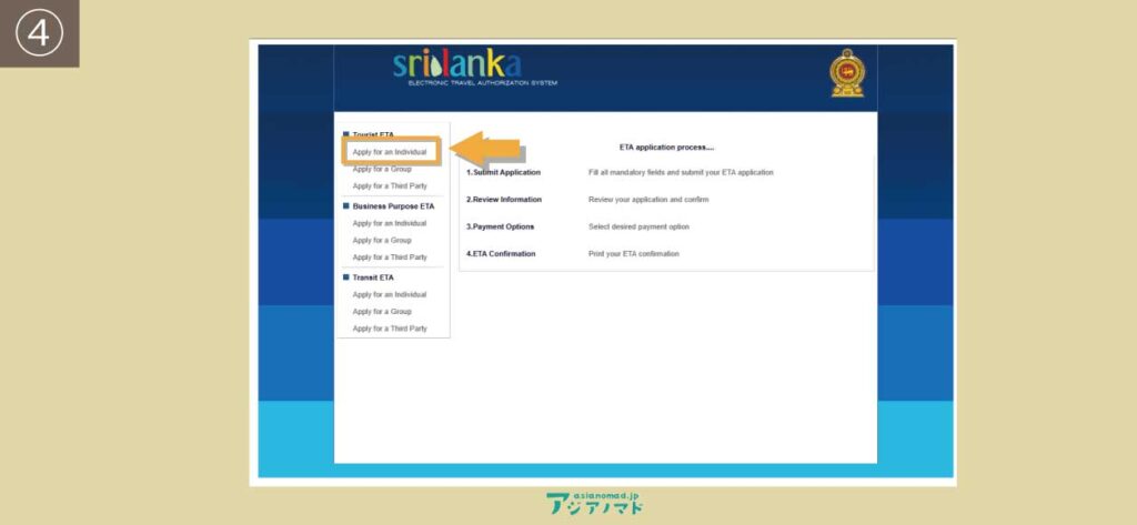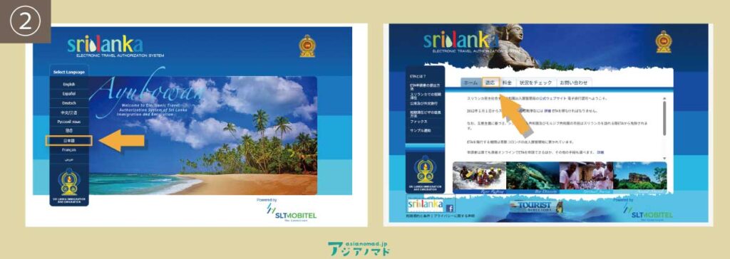 スリランカのビザ申請サイトはコチラ→https://www.eta.gov.lk/slvisa/