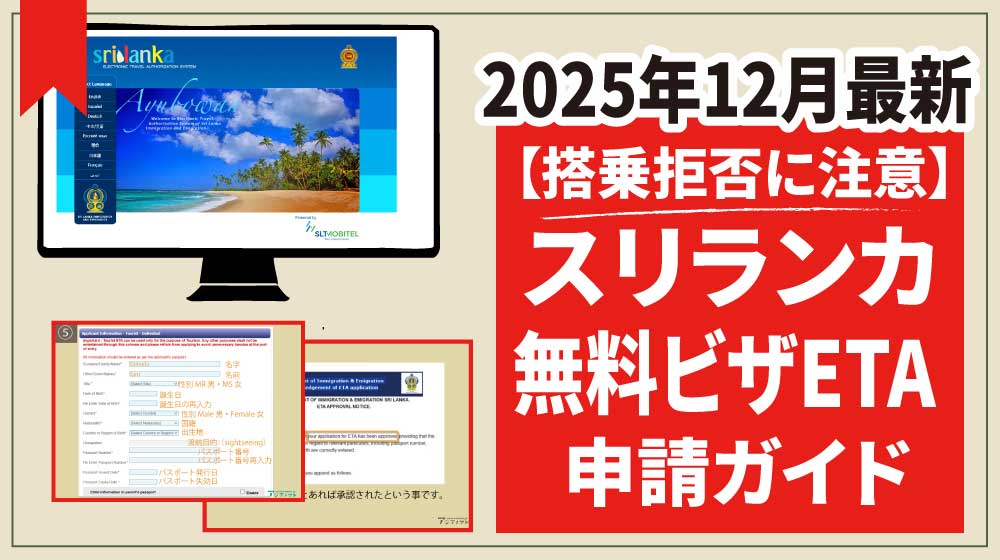2025年10月15日以降にスリランカへ入国する場合、スリランカ到着前までにETA取得が義務となりました。以前まではスリランカの空港についてからでも取得できたのですが、ルールが変わり入国前に手続きを済ませる必要があります。日本から出国前にETA取得が必須という事になります。