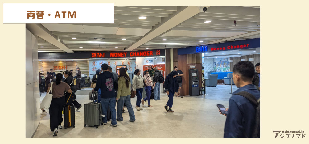 空港の両替所は、街中と比べるとかなり割高で損をします。空港ではATMキャッシングをするのがおすすめです。慣れていない通貨は最初は大変かと思いますが、インドネシアルピアは計算しやすい方だと思います。