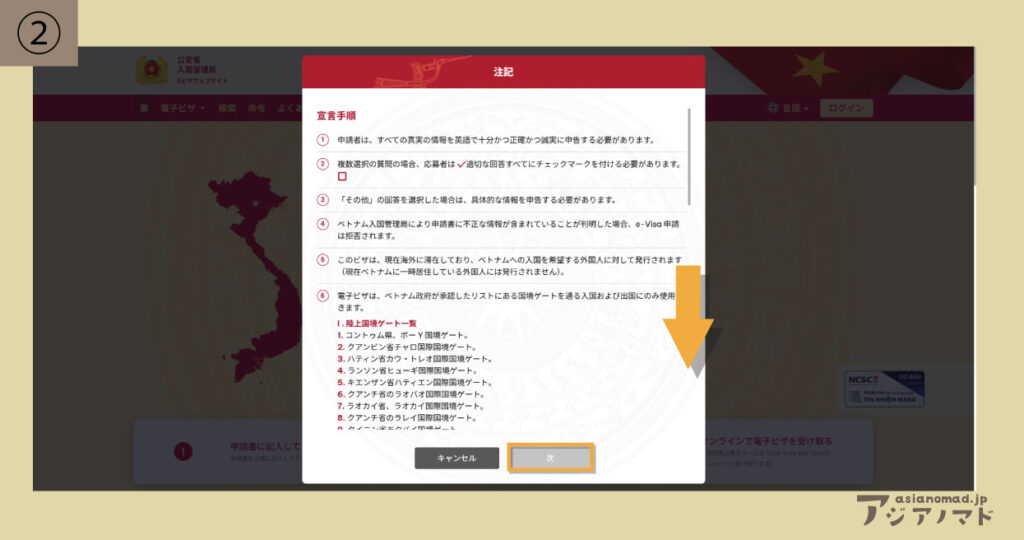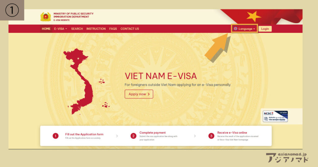 ベトナム公安省出入国管理局が運営する専用サイトにアクセスします。