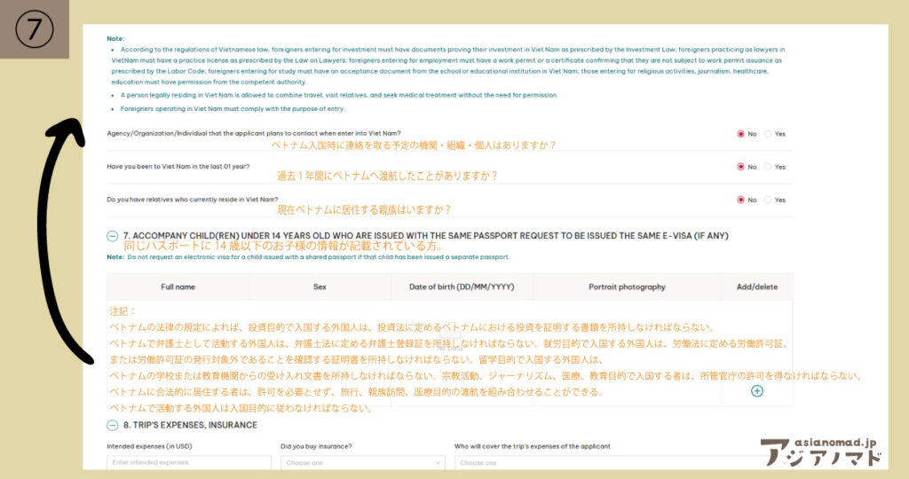 ・入国空港の記入欄には最終到着地ではなく、ベトナムに入国する時の空港を記入しましょう。ハノイやホーチミン経由でダナンやニャチャンに行く方は特に注意してください。