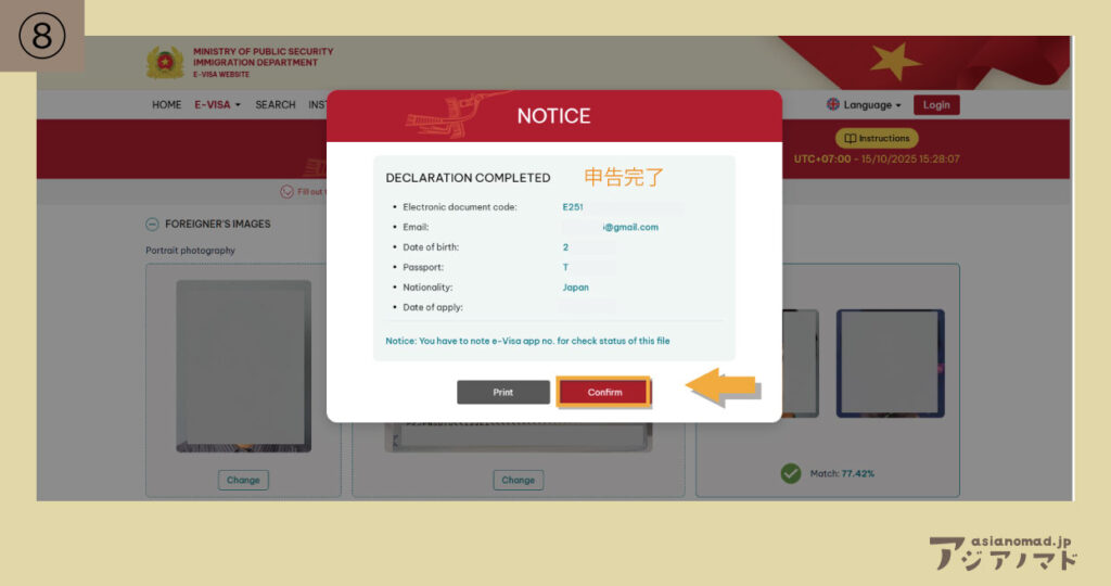 以上でビザの申請が完了です。問題が無ければ3日~4日程でe-Visaの情報が届きます。